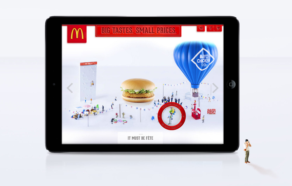 For our ‘Big Tastes. Small Prices’ campaign we put each item on the classic McDonald’s Saver Menu at the centre of its own miniature world. The scenes lived side by side in one continuous scrollable experience. When users grabbed the magnifying glass to take a closer look, the sounds of the scene sprung to life.